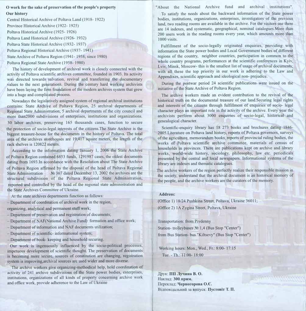 State Archive of Poltava Region (1941- 1958; since 1980)